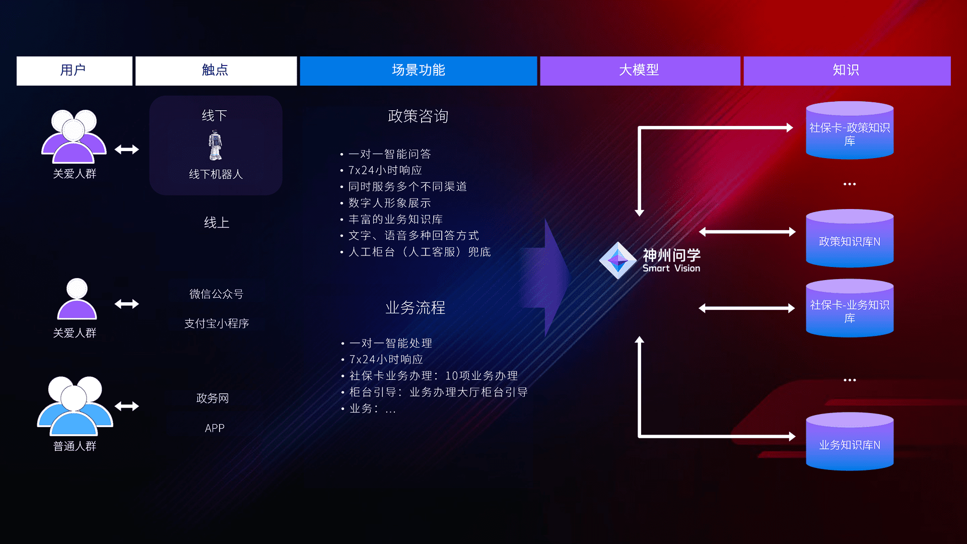 • 线上线下全覆盖:线上提供微信公众号、、、、支付宝小程序、、政务网、、、app多种渠道,,,,与线下机器人形成完整服务体系。。。。